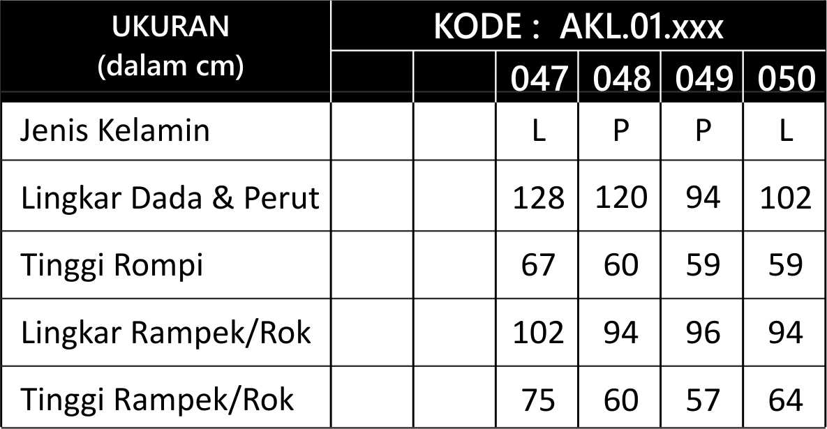| KODE | Laki-laki AKL.01.047, Laki-laki AKL.01.050, Perempuan AKL.01.048, Perempuan AKL.01.049 |