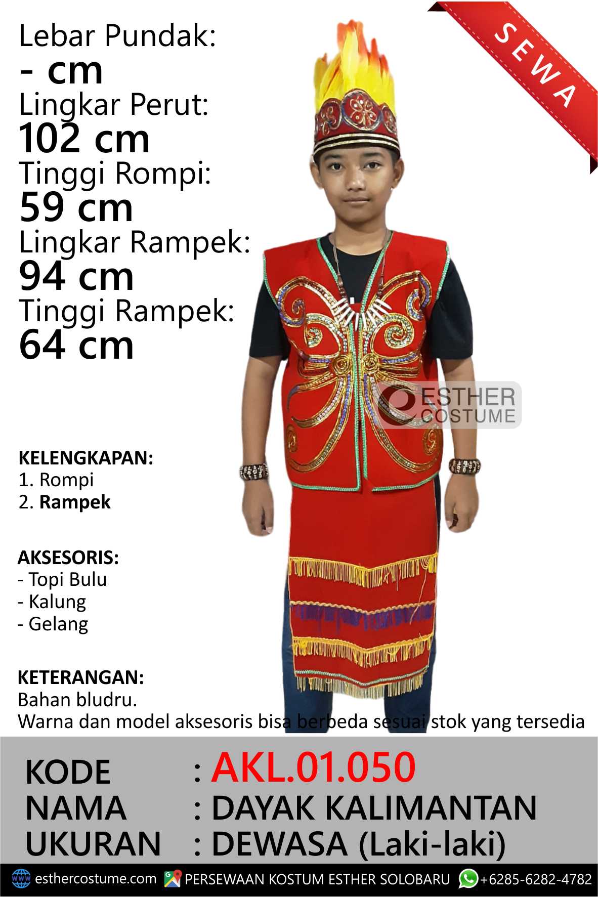 Ukuran, dan kelengkapan tertulis di foto.