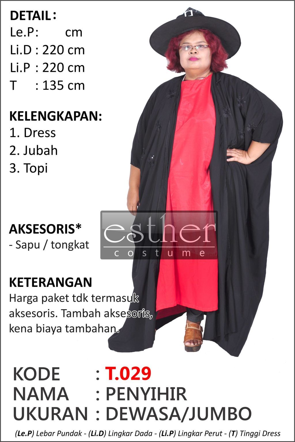 Ukuran, dan kelengkapan tertulis di foto.