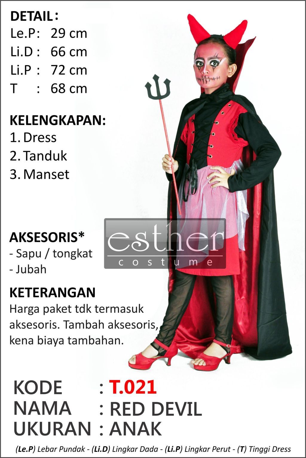 Ukuran, dan kelengkapan tertulis di foto.